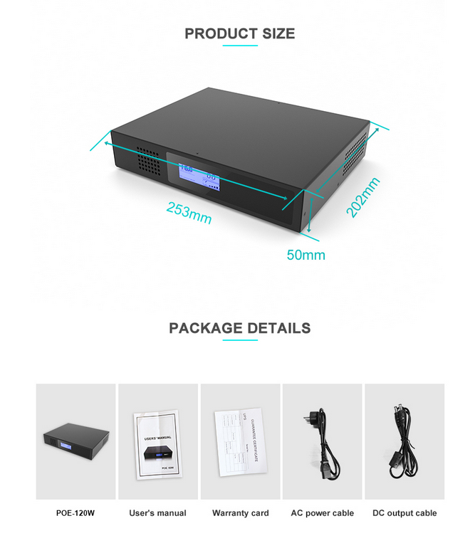 Con un diseño compacto y ligero, este Mini UPS es perfecto para instalaciones donde el espacio limitado es una preocupación. Su capacidad de 120W y salida de 48V en corriente directa (DC) lo convierten en una opción versátil para una amplia gama de dispositivos, ofreciendo rendimiento confiable y alta durabilidad. Además, su compatibilidad con equipos Power over Ethernet (PoE) proporciona una solución eficiente para sistemas de vigilancia y transmisión de datos.